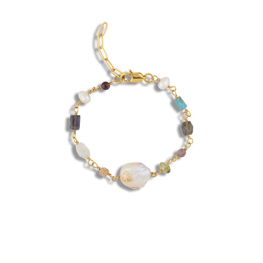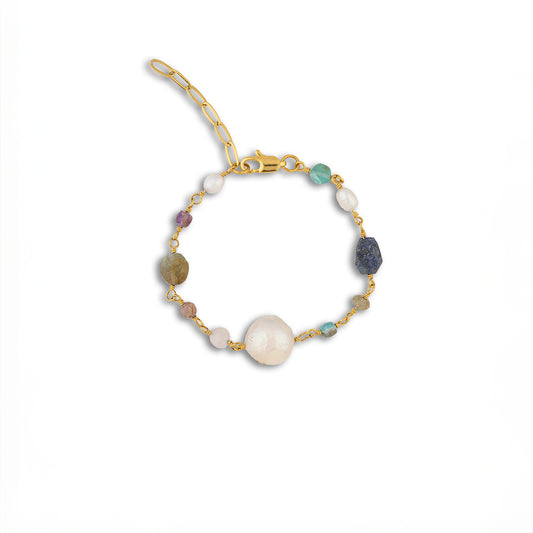 Barok İnci Mix Kristal Doğal Taş Tel Sarma Bileklik