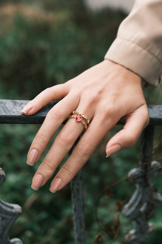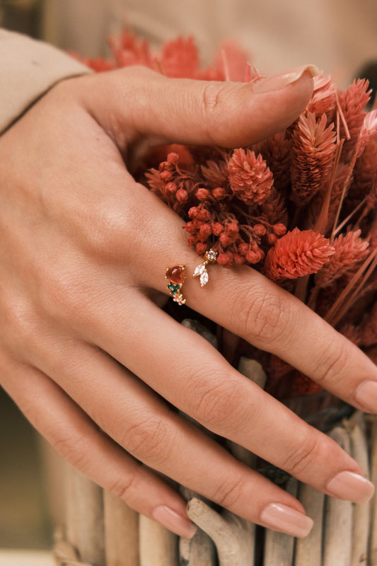 Mineli Çiçekler Işıldayan Kalp Romance Yüzük