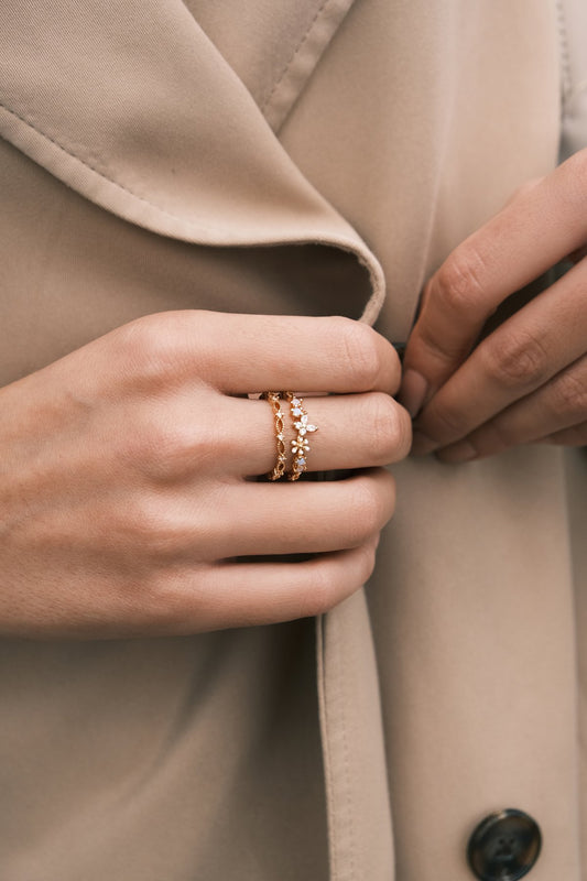 İkili Zirkon Kelebek Mineli Papatya Romence Yüzük