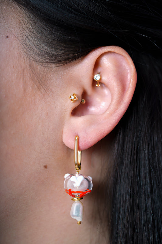 White Hearts Ball Murano İnci Küpe