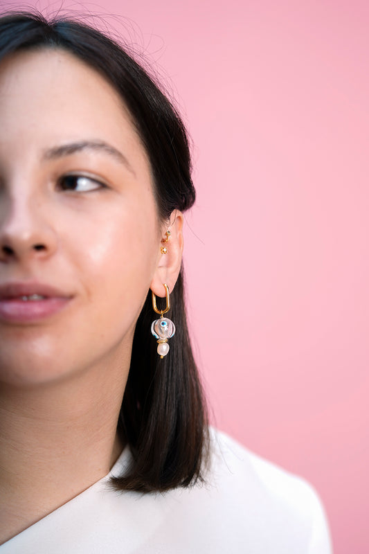 Céla – Sarı Murano Cam ve İnci Charm Halka Küpe | Soléna