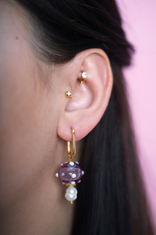 Lilac Dots Ball Murano İnci Küpe