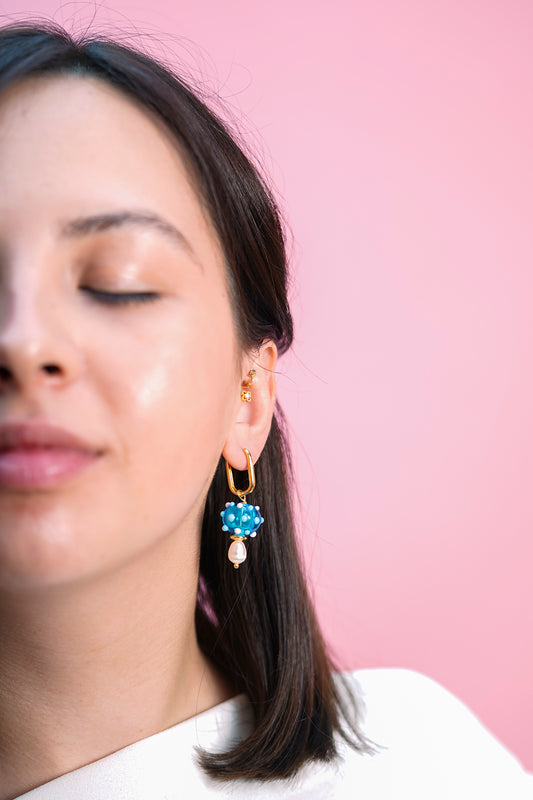Marin – Turkuaz Murano Cam ve Altın Denizyıldızı Küpe | Soléna