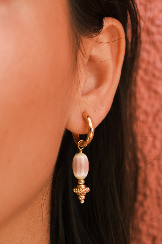 Sienna – Krem Murano ve Altın Deniz Kabuğu Charm Halka Küpe | Soléna