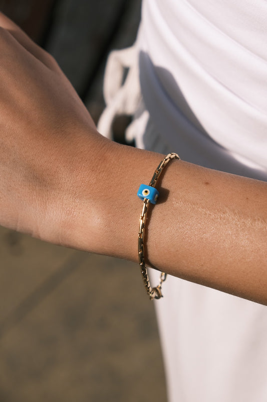 Link Zincir Renkli Nazar Minimal Altın Kaplama Bileklik