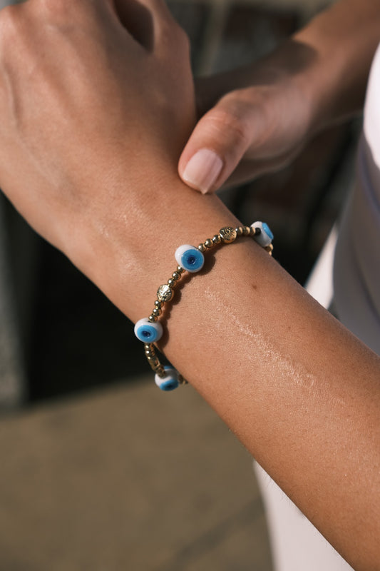 Mini Nazar ve Altın Boncuklu Dizi Bileklik