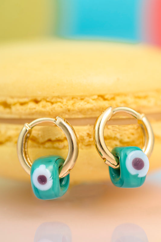 Su Yeşili Nazar Mini Yuvarlak Sıvama Askılı Küpe