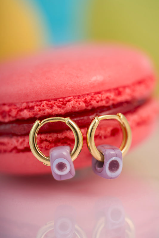 Murano Kare Nazar Charm Halka Küpe - Lila