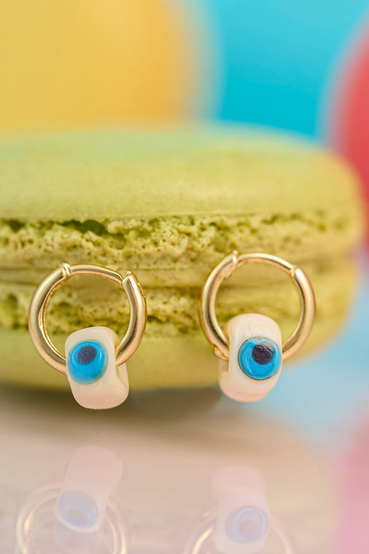 Murano Kare Nazar Charm Halka Küpe - Krem