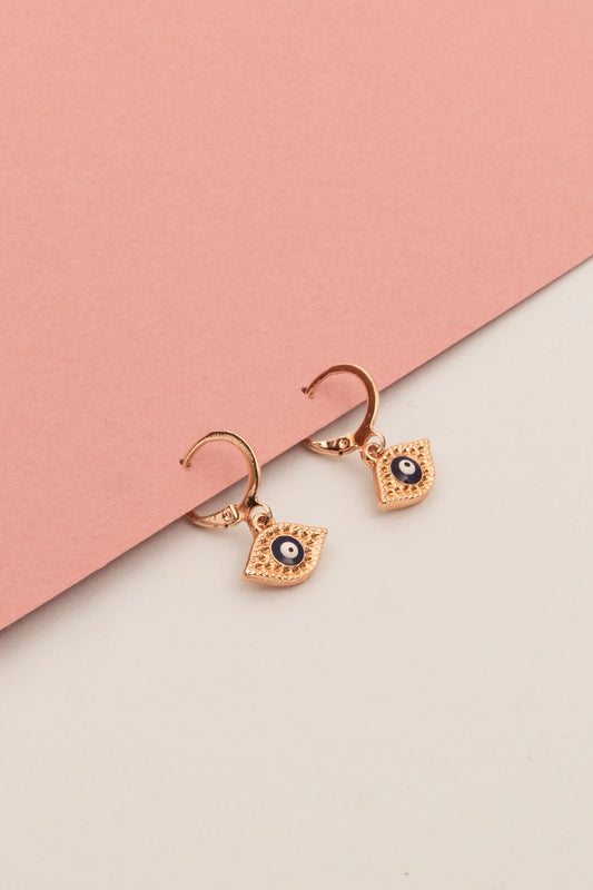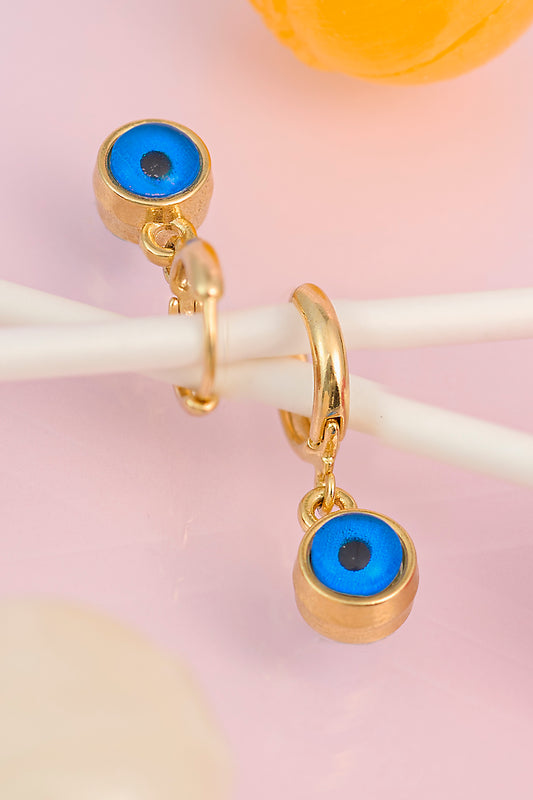 Nazar Göz Figürlü Charm Altın Kaplama Halka Küpe