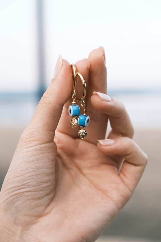 Nazar Boncuk Sallantılı Küpe - Turkuaz