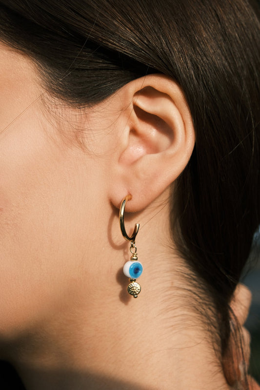 Nazar Boncuk Sallantılı Halka Küpe - Beyaz