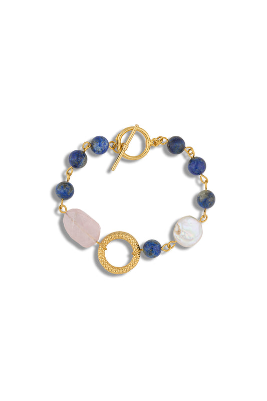 Lapis Pembe Kuvars Barok İnci Mix Tasarım Bileklik