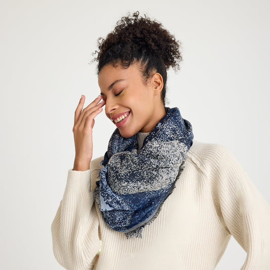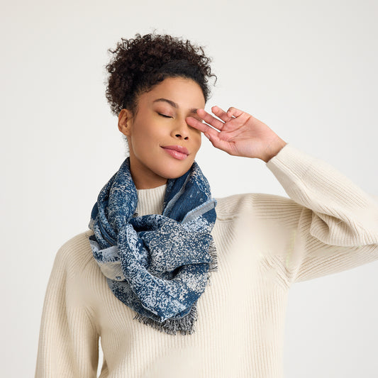 Oriental Softness Kışlık Pamuk Şal - Lacivert Desen