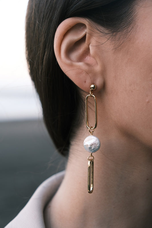 Dikdörtgen Barok İnci Charm Halka Küpe