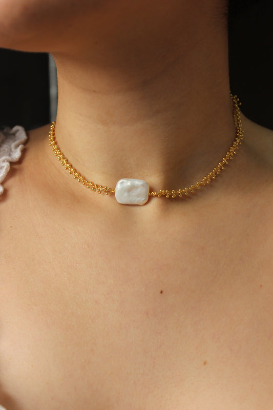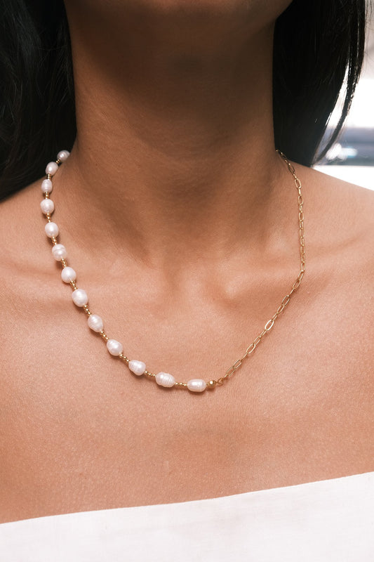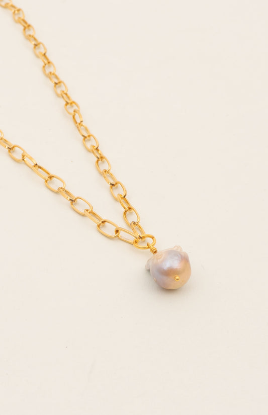 Barok İnci Uçlu Link Zincir Altın Kaplama Kolye