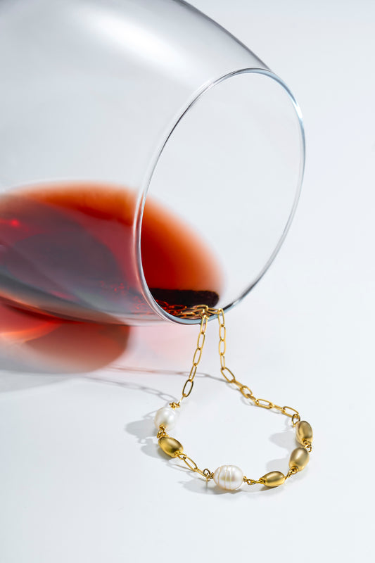 Para İnci Damga Altın Boncuk Dizi Bileklik