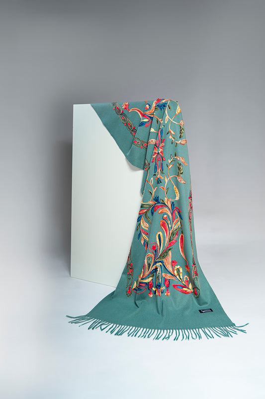 El Işlemesi Dokuma Kaşmir Şal – Anka Yeşil