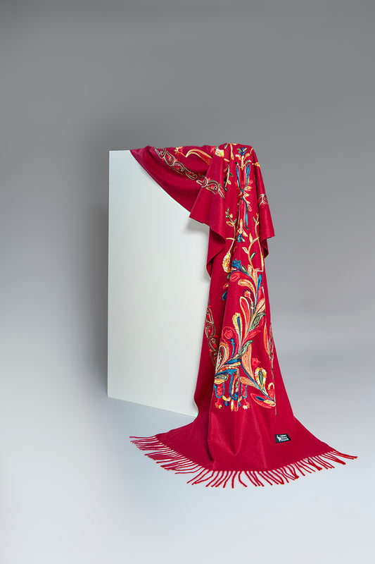 El Işlemesi Dokuma Kaşmir Şal – Anka Bordo