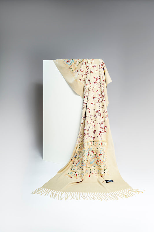 El Işlemesi Ipek Kaşmir Şal – Bereket Krem