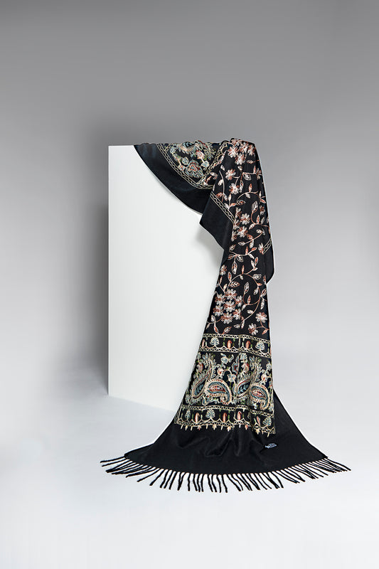 El Işlemesi Ipek Kaşmir Şal – Lalezar Siyah