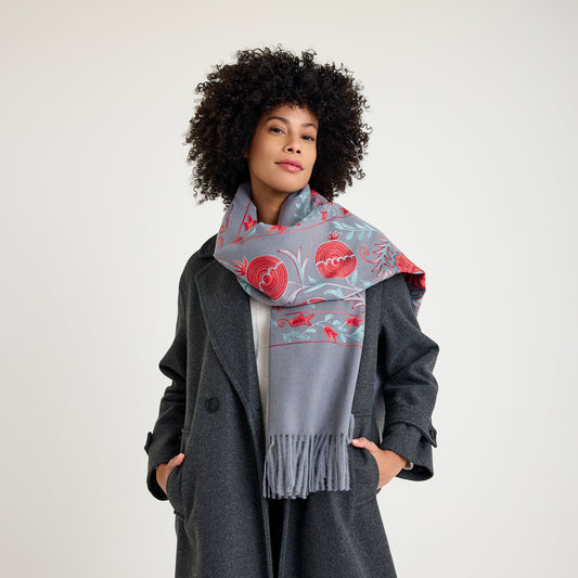 El Işlemesi Ipek Kaşmir Şal – Bereket Gri