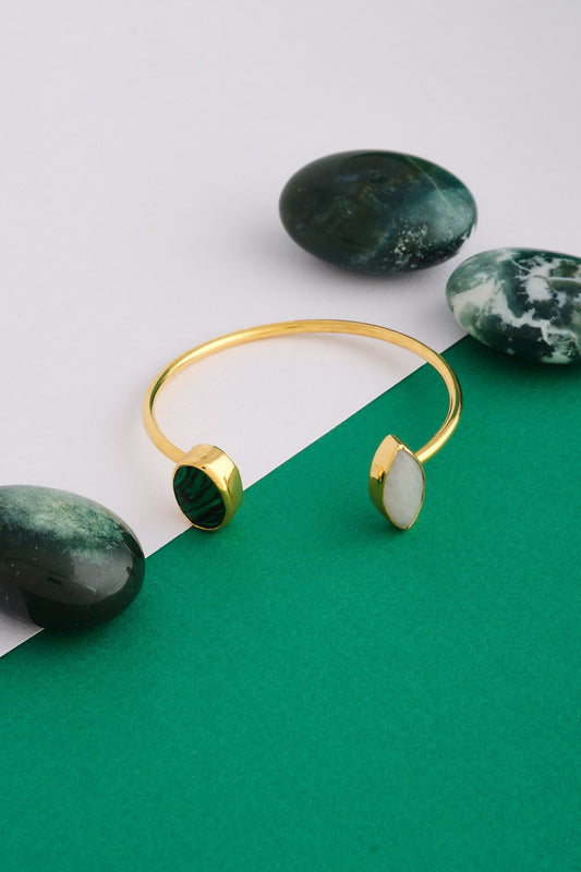 Ay Taşı ve Malahit Taşlı Altın Kaplama İkili Sıvama Doğal Taş Bileklik