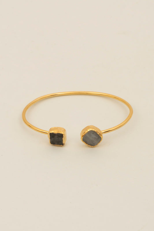Aytaşı-Labradorit Altın Kaplama İkili Sıvama Doğal Taş Kelepçe Bileklik