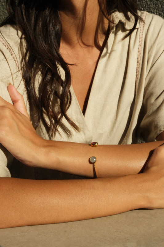 Ay Taşlı Altın Kaplama Kelepçe Bileklik