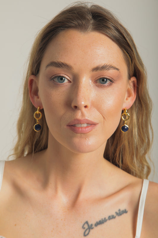 Lacivert- Buz Mavi Kedi Gözü Cam İkili Sıvama Askı Küpe