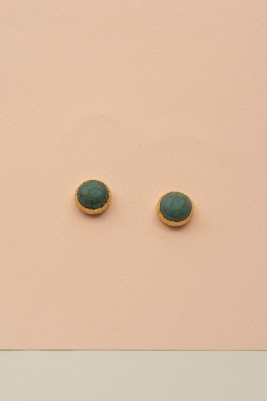 Turkuaz Taşlı Çivili Minimal Altın Kaplama Tekli Sıvama Doğaltaş Küpe
