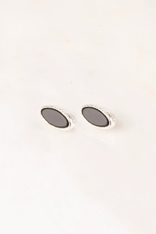 Oniks Taşlı Gümüş Kaplama Çivili Tekli Sıvama Küpe