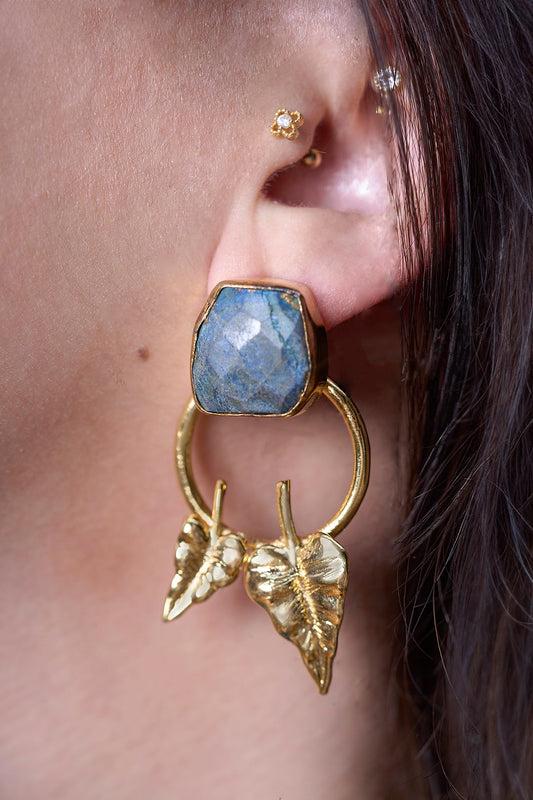 Lapis Lazuli Bahar Yaprak Figürlü Özel Tasarım Doğal Taş Küpe