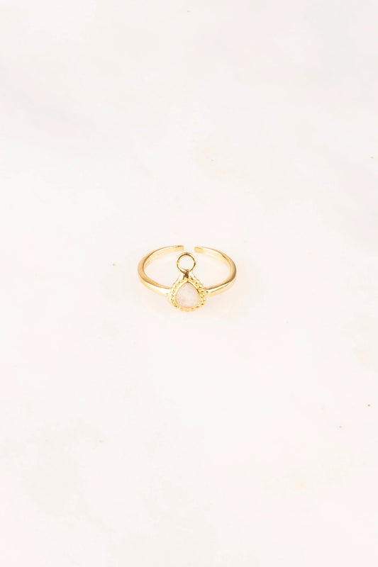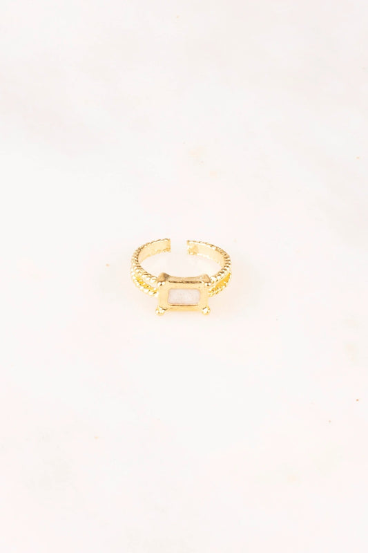 Sedef Mineli Ayarlanabilir Altın Kaplama Yüzük - Beyaz