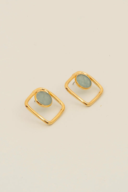 Yeşim Taşlı Çivili Minimal Altın Kaplama Tekli Sıvama Doğaltaş Küpe
