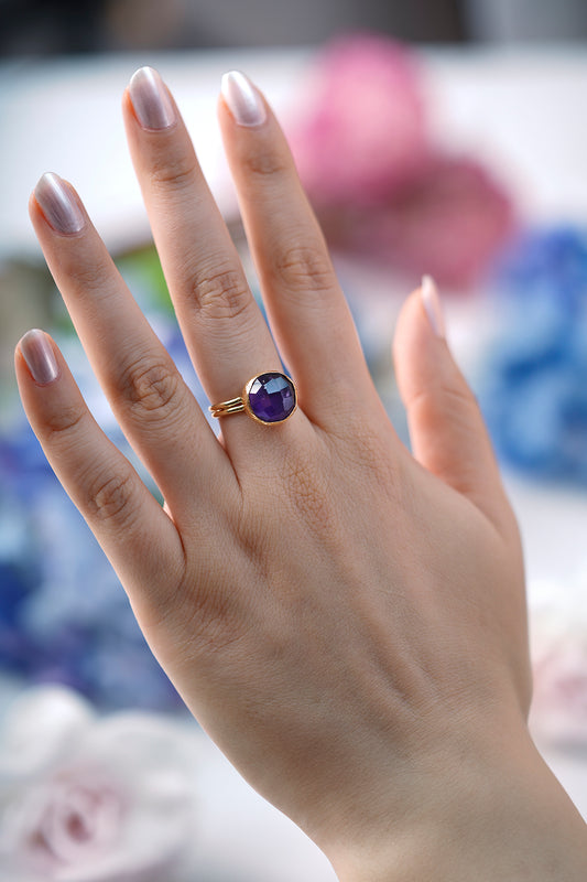 Yuvarlak Ametist Taşlı Tekli Sıvama Yüzük