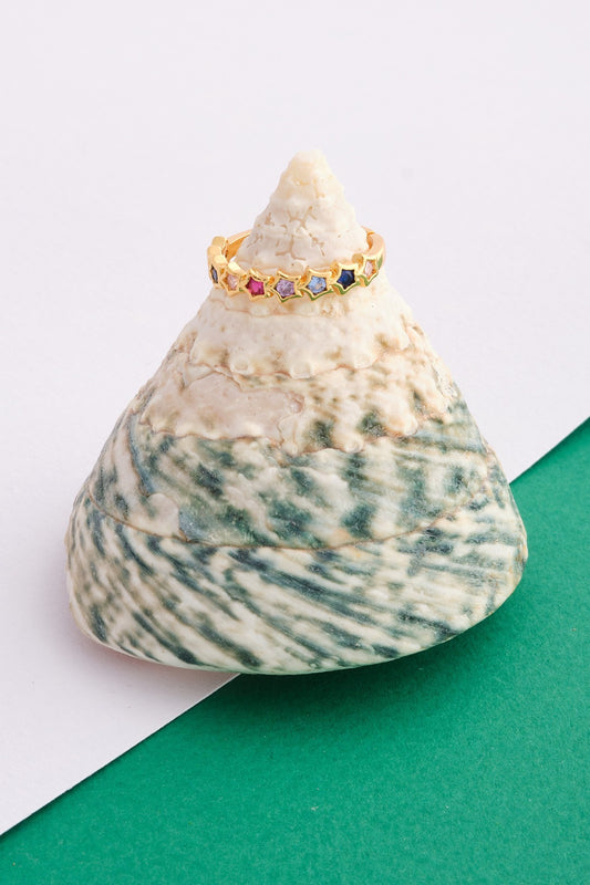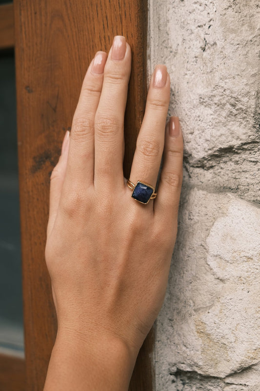 Kare Safir Taşlı Altın Kaplama Ayarlanabilir Tekli Sıvama Yüzük