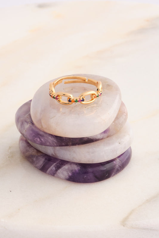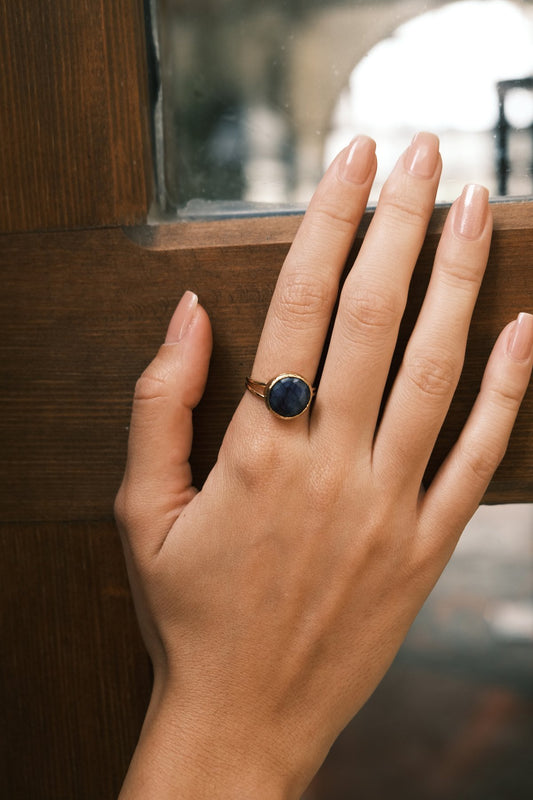 Yuvarlak Safir Taşlı Altın Kaplama Ayarlanabilir Tekli Sıvama Yüzük