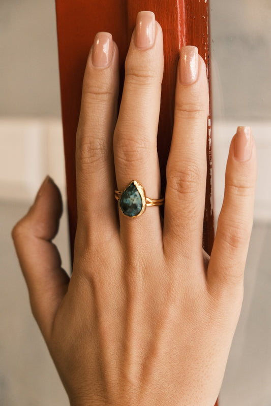 Damla Turkuaz Taşlı Ayarlanabilir Altın Kaplama Tekli Sıvama Yüzük