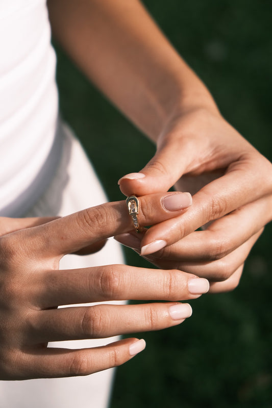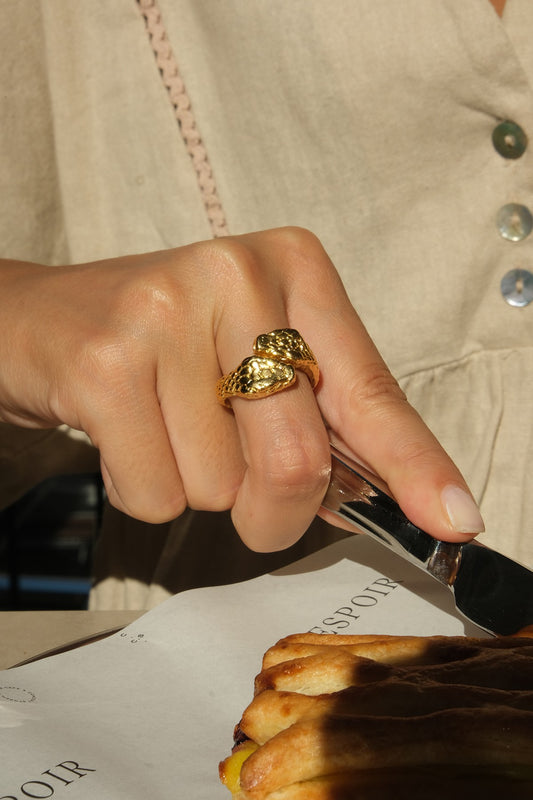 Asimetik Pembe Kedi Gözü Cam İnci İkili Sıvama Yüzük