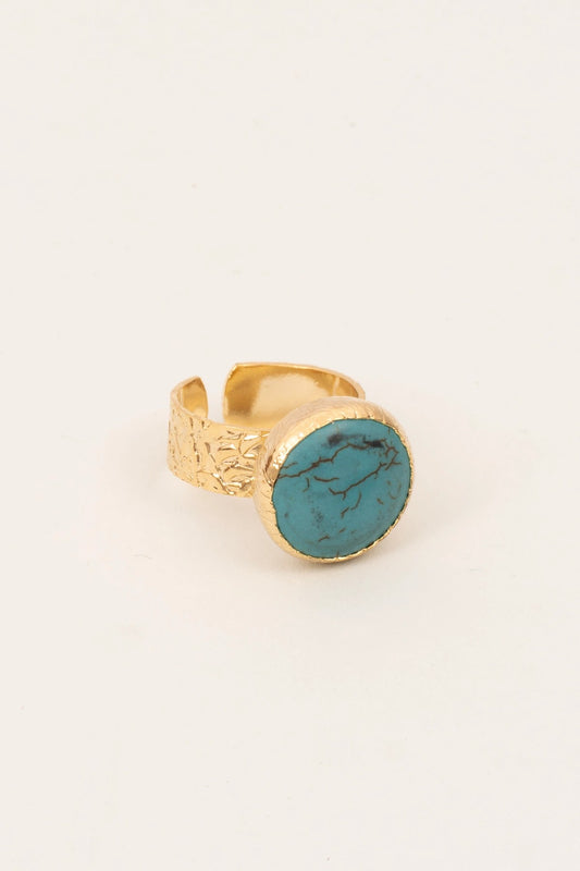 Daire Turkuaz Taşlı Altın Kaplama Ayarlanabilir Tekli Sıvama Yüzük