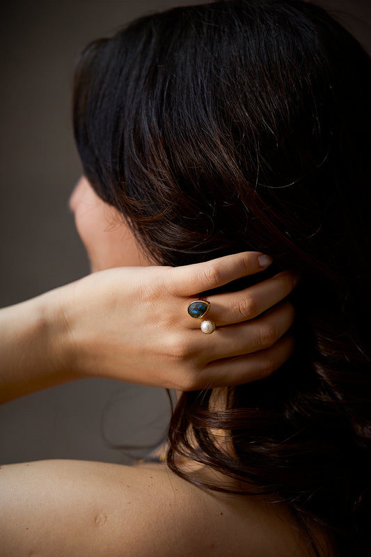 Damla Labradorit İnci İkili Sıvama Yüzük