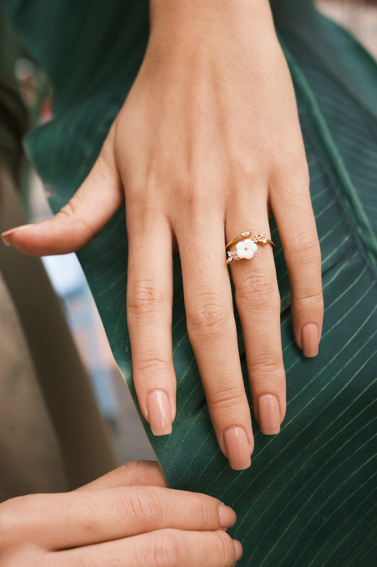 Sedef Papatya ve Beyaz Zirkon Taşlar Romance Yüzük
