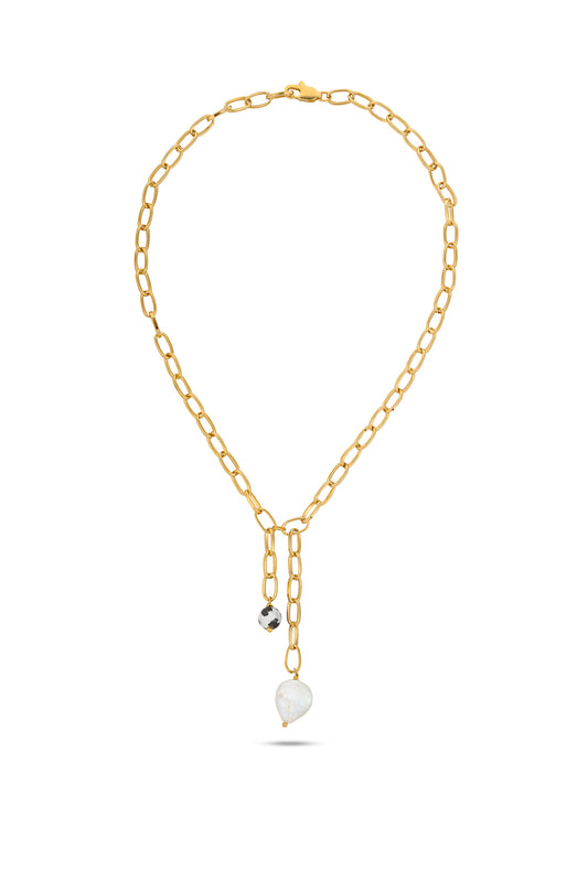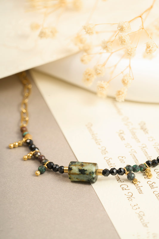 Siyah Hint Akik & İnci Charm Zincir Sallantılı Kolye