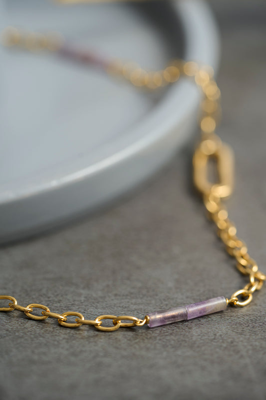 Minimal Ametist Gümüş Zincir Doğal Taş Kolye