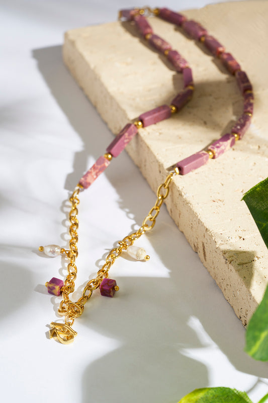Mor Varisit Barok İnci Küp Boncuk Ra'nın Gözü Charm Dizi Kolye
