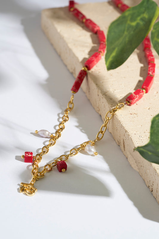 Kırmızı Varisit Barok İnci Küp Boncuk Ra'nın Gözü Charm Dizi Kolye