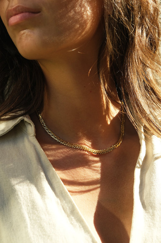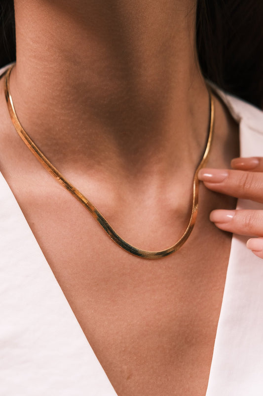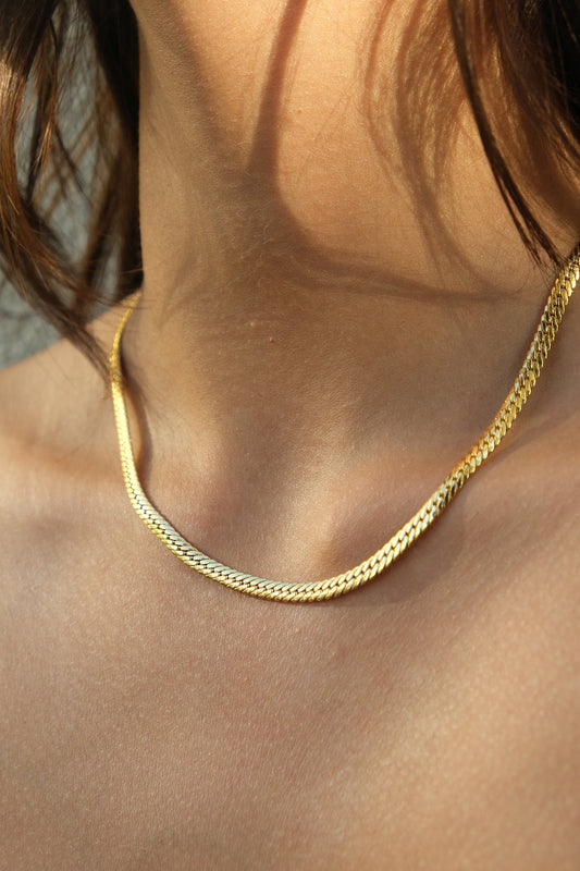 Baskılı Yassı İtalyan Altın Kaplama Zincir Kolye