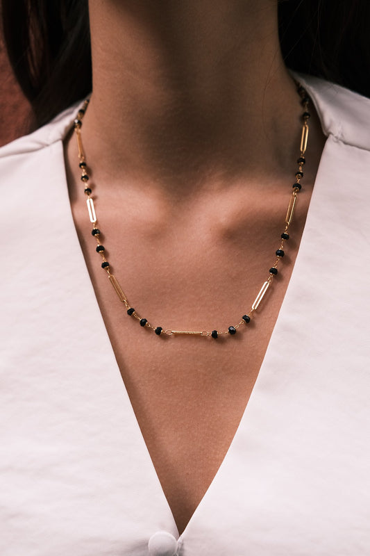 Link Zincir Siyah Kristal Minimal Altın Kaplama Kolye
