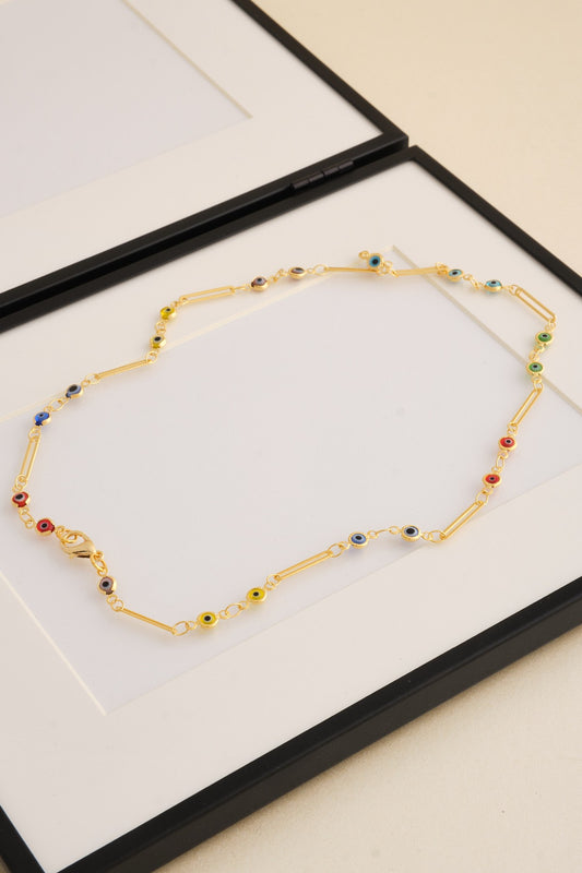 Link Zincir Renkli Nazar Minimal Altın Kaplama Kolye